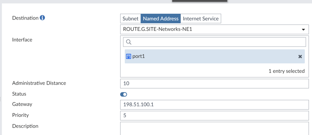 set dstaddr "ROUTE.G.SITE-Networks-NE1"