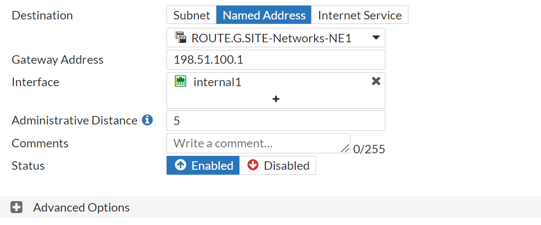 set dstaddr "ROUTE.G.SITE-Networks-NE1"