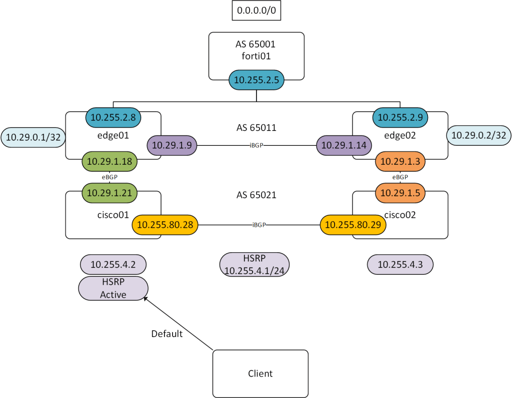 In short what Cisco01 is hrsp master and does mulipath routing over cisco02 / edge02 to the fortigate, for the time being multipath has been turn off on cisco02.